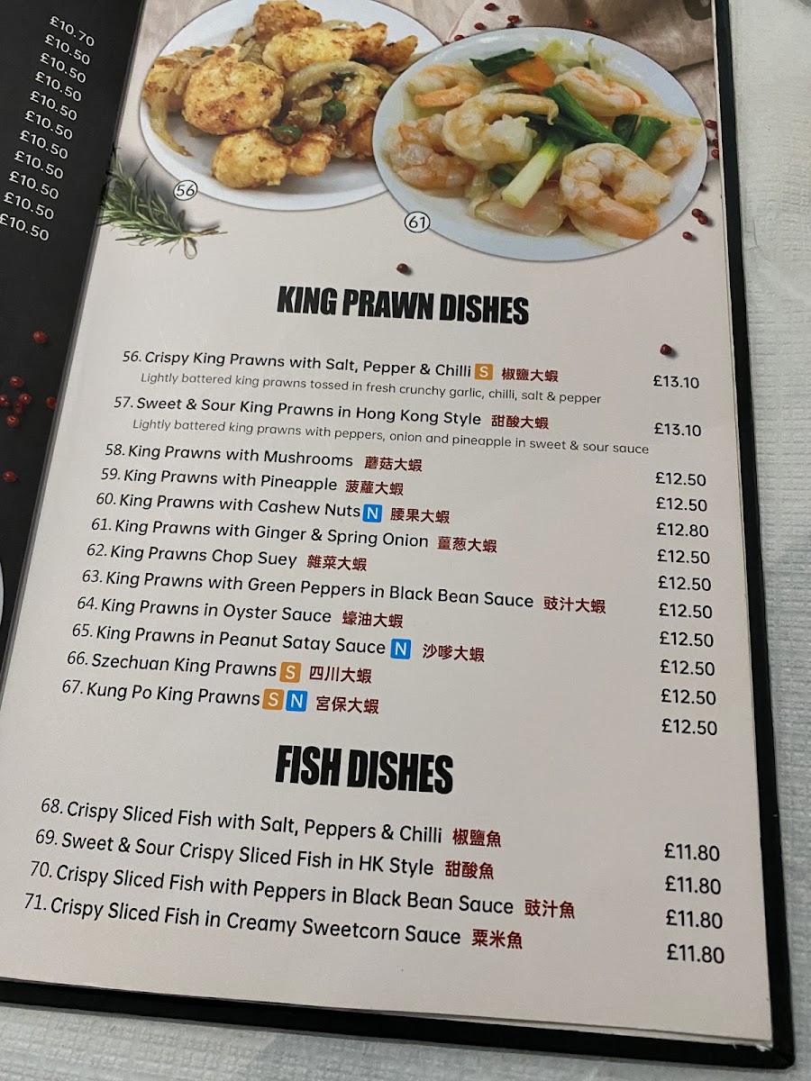 Hahtly batered king prawns (with she), stir-fried with spring onion finished with unigue soy sauce