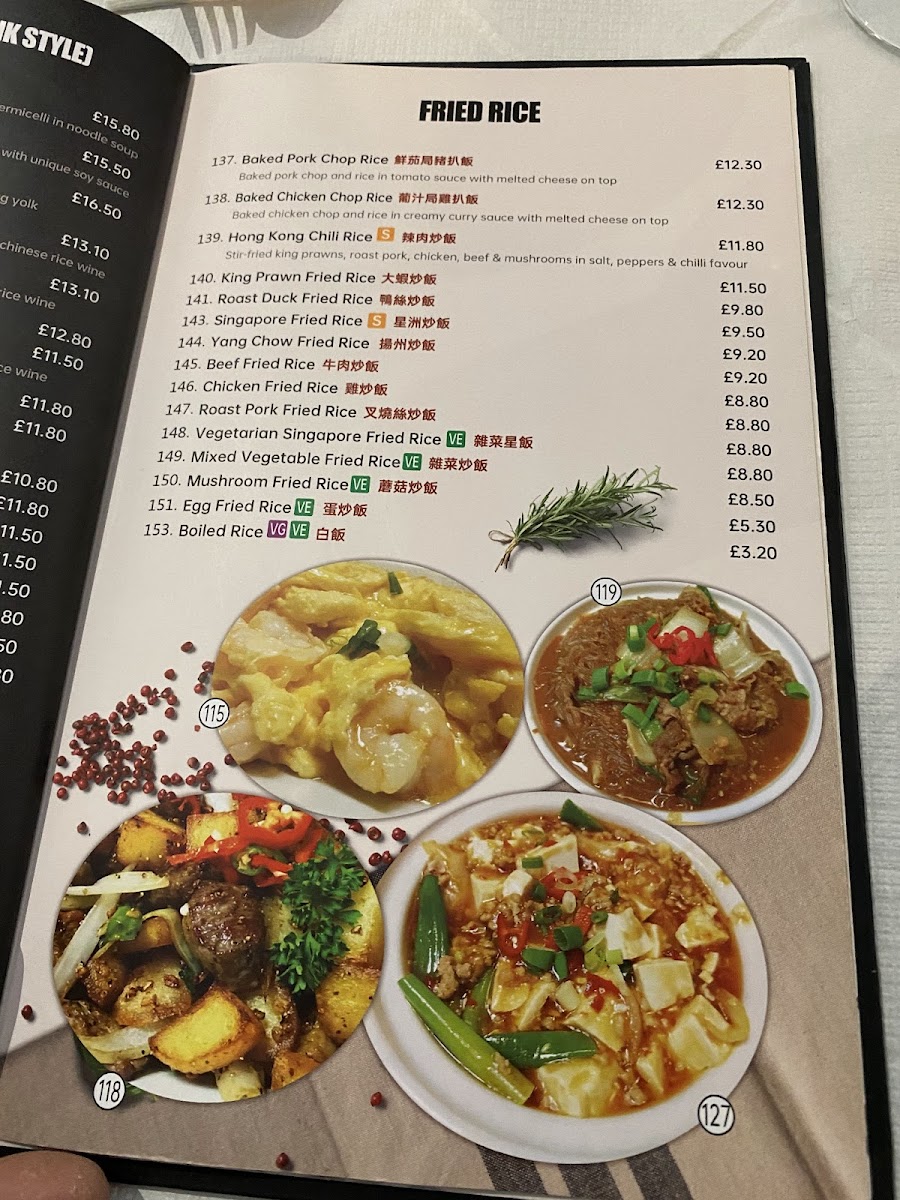 King Prawn Fried Rice with egg, peas, and spring onion.